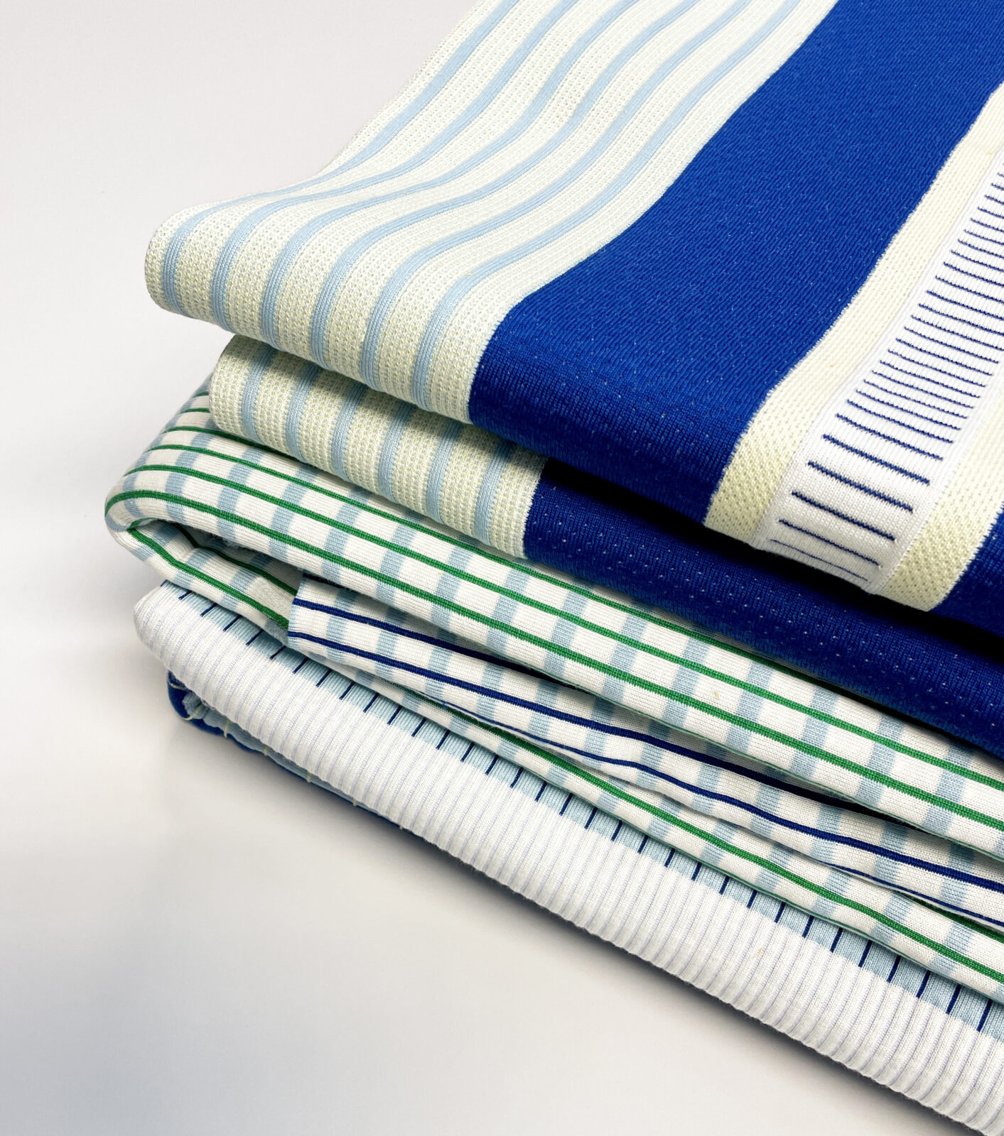 After graduating from KASK in Belgium with a master’s degree in textile design, Leda Devoldere founded her own textile design studio. In the TextielLab, she and product developer Mathilde Vandenbussche investigated knitted furniture fabrics on the circular knitting machine. They tested various stitches to ensure the fabric is soft but firm and not too stretchy. The technical development process involved simplifying both the design and the stitches, with the aim of creating the simplest, purest version. The experiments yielded an archive of stitches and structures that formed the basis of BLOCKS: thick woollen, padded fabrics with hardly any stretch. To achieve the desired result, a double cloth technique was used, with a polyester thread added for extra volume.