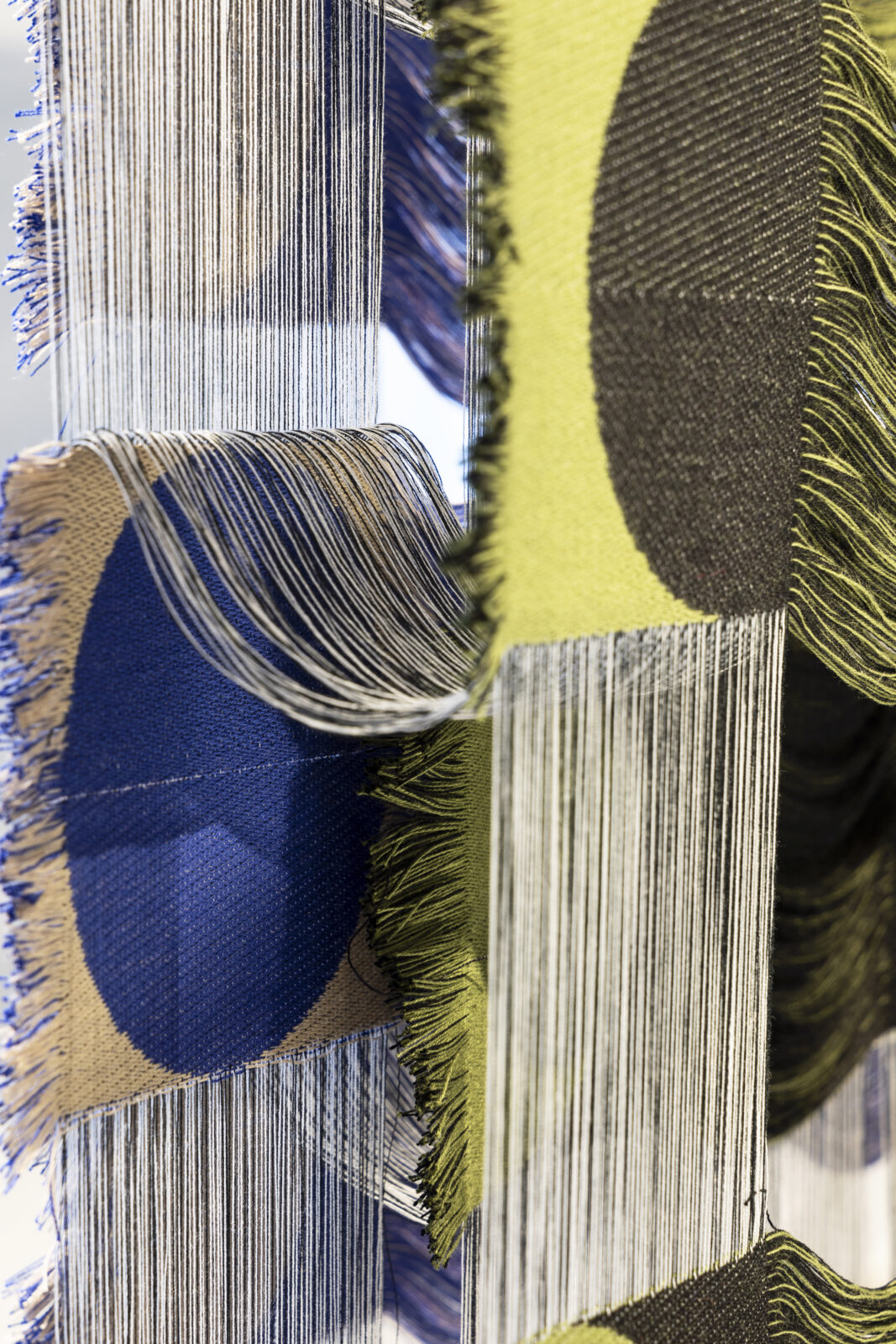 Danish designer Emilie Palle Holm graduated with a master’s degree in textile design from The Swedish School of Textiles with ORIORI, a jacquard-woven reinterpretation of origami. The project not only won Palle Holm several design awards, but it also secured her a working period in the TextielLab, where she could continue experimenting on the industrial machines. In the lab, she helped with assignments for other designers and artists and started a new project of her own. WOVEN VOXEL explores ways to transform two-dimensional woven surfaces into three-dimensional shapes. The cotton, polyester and wool fabrics initially appear to be completely flat structures. But appearances can be deceptive. The dynamic layers and incredible depth are activated when Palle Holm cuts the fabrics along carefully chosen lines, then unfolds and hangs them up.