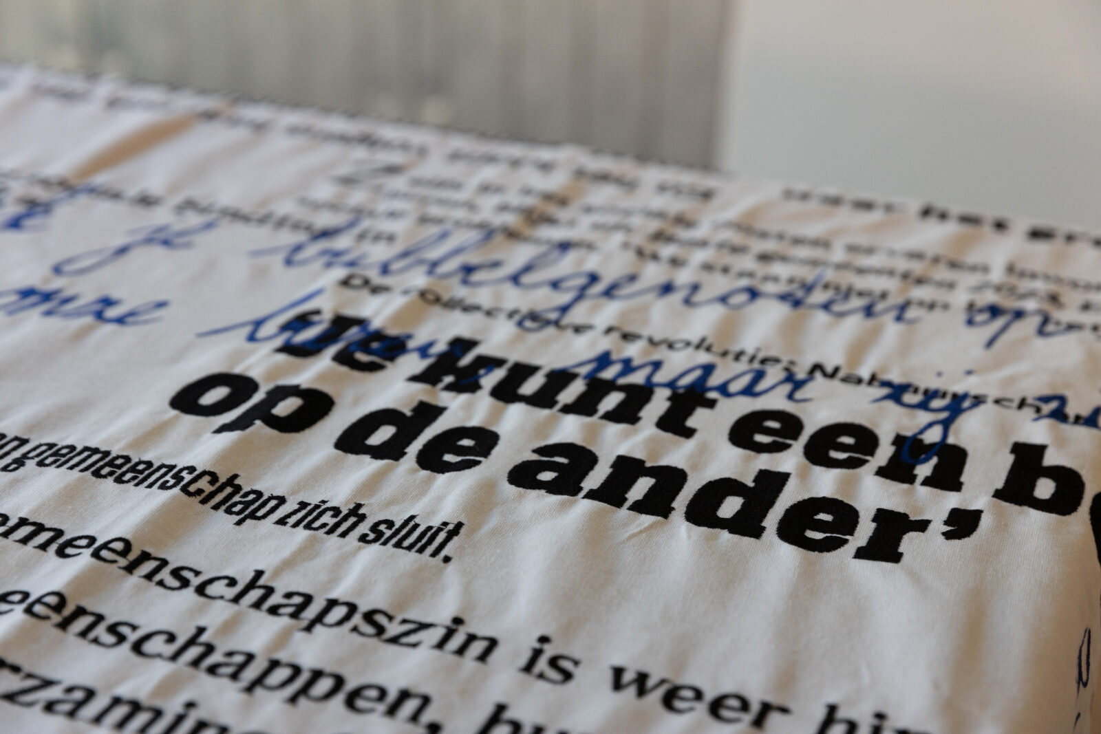 Lucas Mullié and Digna Kosse both studied at the Design Academy Eindhoven and co-founded Foodcurators, a design studio that brings together food and design. For Wiede Wold, a municipal initiative in Wolden, Drenthe, Mullié and Kosse were asked to reflect on the future of rural areas. They designed a regulars’ table as a meeting place where conversations about ‘naoberschap’ (neighbourliness) could be held. Anyone who pulled up a chair could share their views by scratching them into the table. The Foodcurators also made a tablecloth featuring statements, headlines and news items about naoberschap – a quality that is praised by politicians but also used as an argument to cut facilities in rural areas.