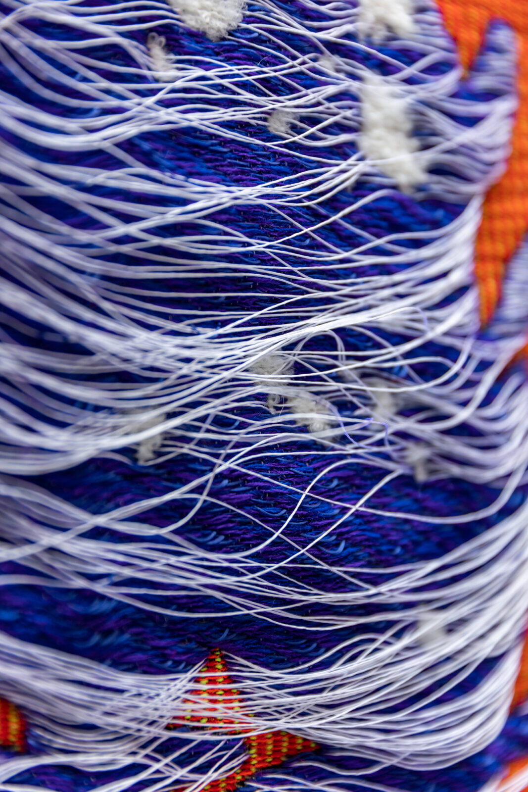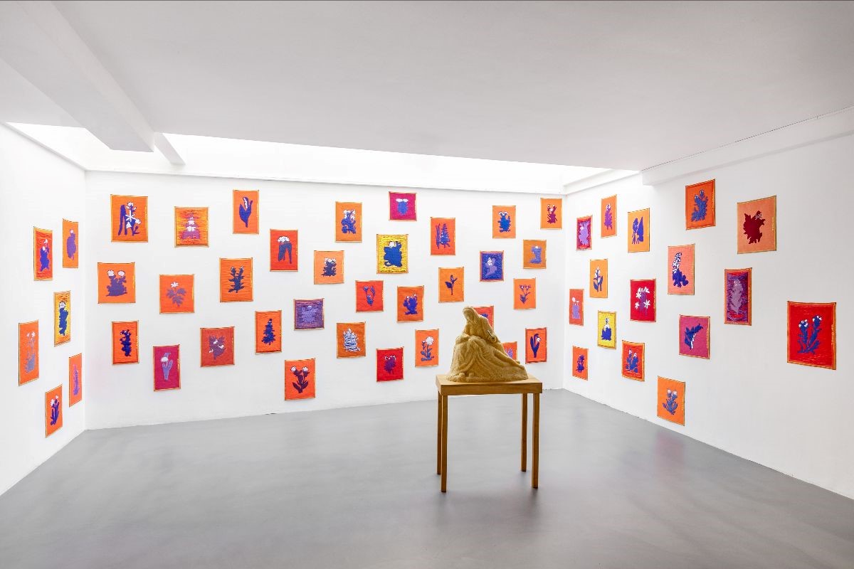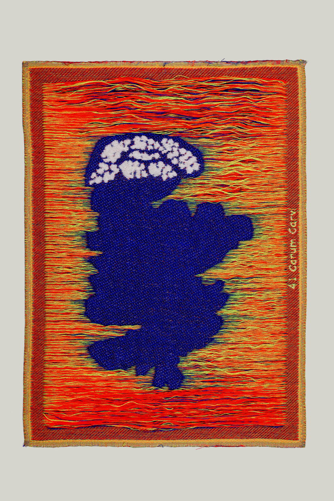 The installation is an artistic exploration of the concepts of absence and loss in relation to ethics and politics. Hurkmans combines the colourful floral motifs with the Pietà theme to investigate the disruption of human values and natural harmony. The designs all share the same palette but are woven in a different mix of yarns and weaves to emphasise the uniqueness of each flower.