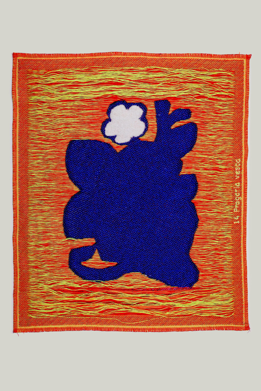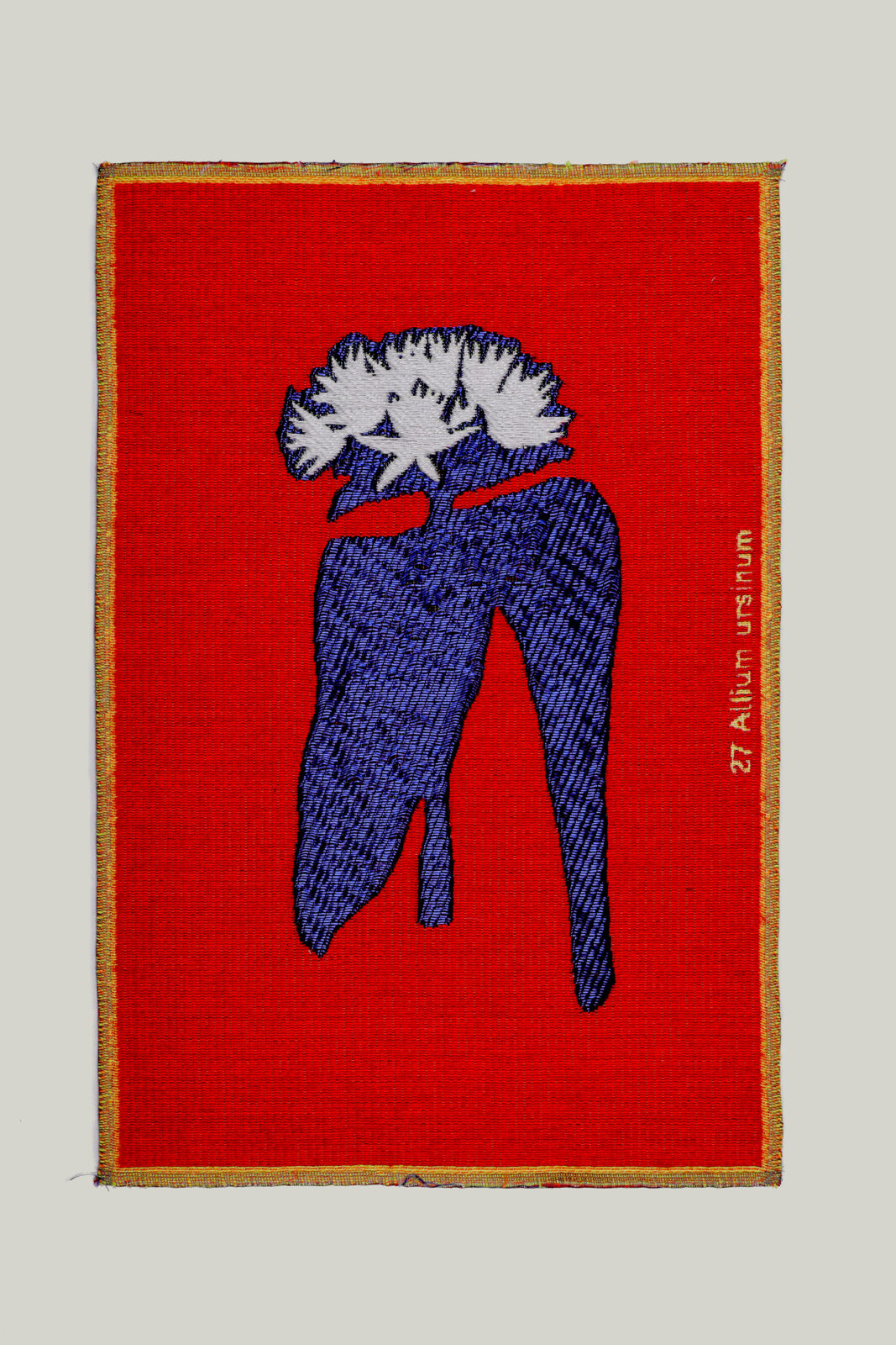 During her first visit to the TextielLab in 2024, artist Rini Hurkmans developed 55 small woven tapestries with white spring flowers as a recurring motif. The works were part of an installation in her solo exhibition at Lumen Travo Gallery in Amsterdam. The tapestries, measuring approximately 25 x 30 cm, hung on the walls around a beeswax sculpture titled Pietà, millefleurs. The installation continues Hurkmans’ long-term investigation of Michelangelo’s Pietà (1499). For this work, she was also inspired by La dame à la licorne (1500), a series of tapestries made in the millefleurs style.