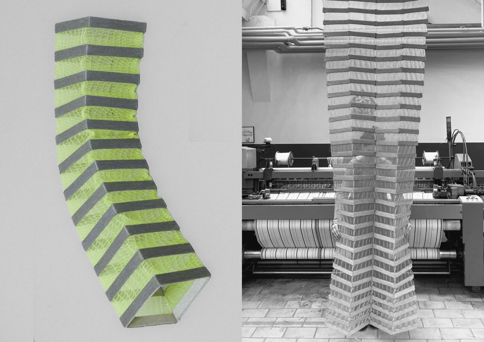 For her graduation project at ArtEZ, product designer Lieve Dam combined her fascination for textiles and architecture. Fabricating space questions the static nature of architecture: if we make clothing, our second skin, flexible, breathable and adaptable, why do we make our third skin, the enclosure of rooms and buildings, so rigid and closed? Dam challenges the current concept of architecture by highlighting the role textiles can play in our buildings and proposes knitted materials as an alternative to bricks.