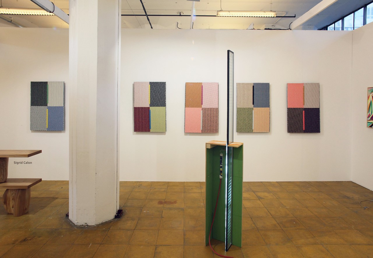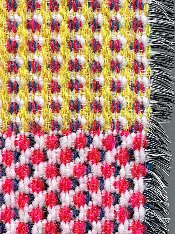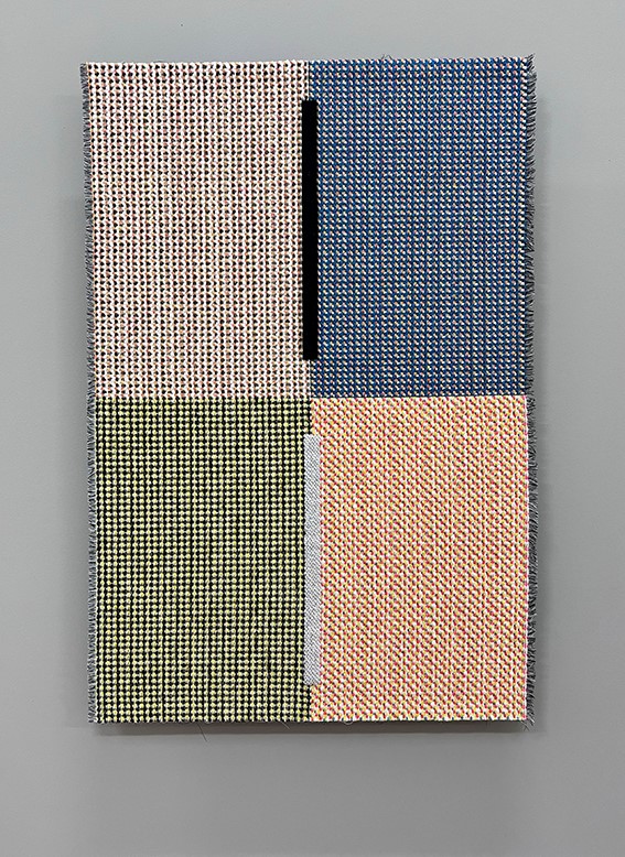 In 2024, Calon added a new series to her Woven grids, which she first started in 2014. Using a maximum of four colours, she made a series of unique combinations of colour blocks that play with the ‘mixing effect’. From a distance, the blocks appear to be a single colour. However, move closer and pixels become visible. Closer still and it becomes apparent how the different coloured yarns are interwoven. The edges of the orderly grids are left unfinished in a nod to perfection versus imperfection. The new Woven grids were exhibited in Galerie VIVID at ART Rotterdam in 2024.
